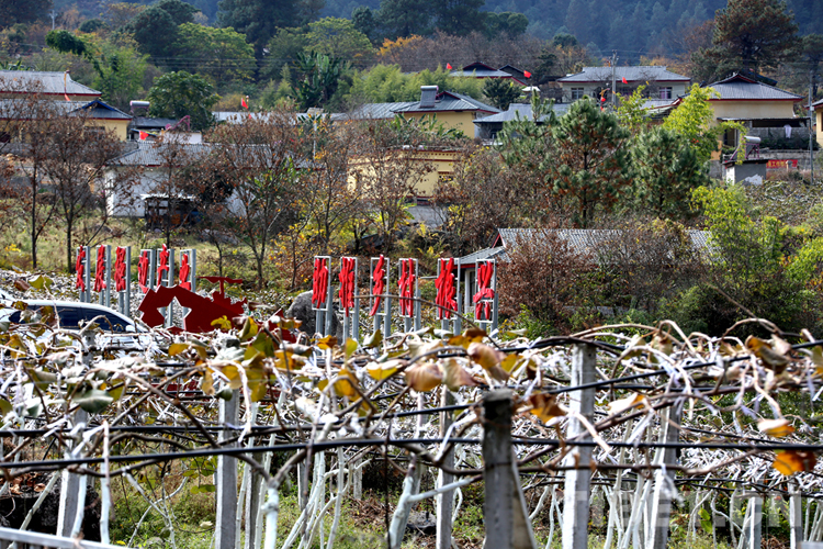 圖為下察隅鎮(zhèn)的一個邊境小康村前面配套的獼猴桃產(chǎn)業(yè)園 攝影:王佳豪