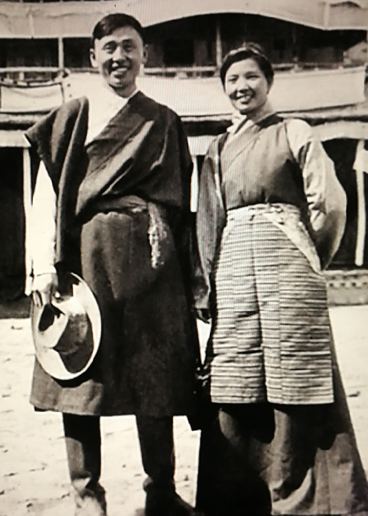 這是盛瑞玲與丈夫李正大在那曲地區(qū)工作時,著藏裝拍照留念(唐召明提供,1964年攝)