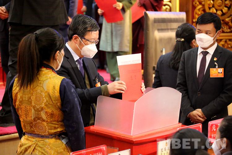 圖為政協(xié)委員投下神圣而又莊嚴(yán)的一票 攝影:王佳豪