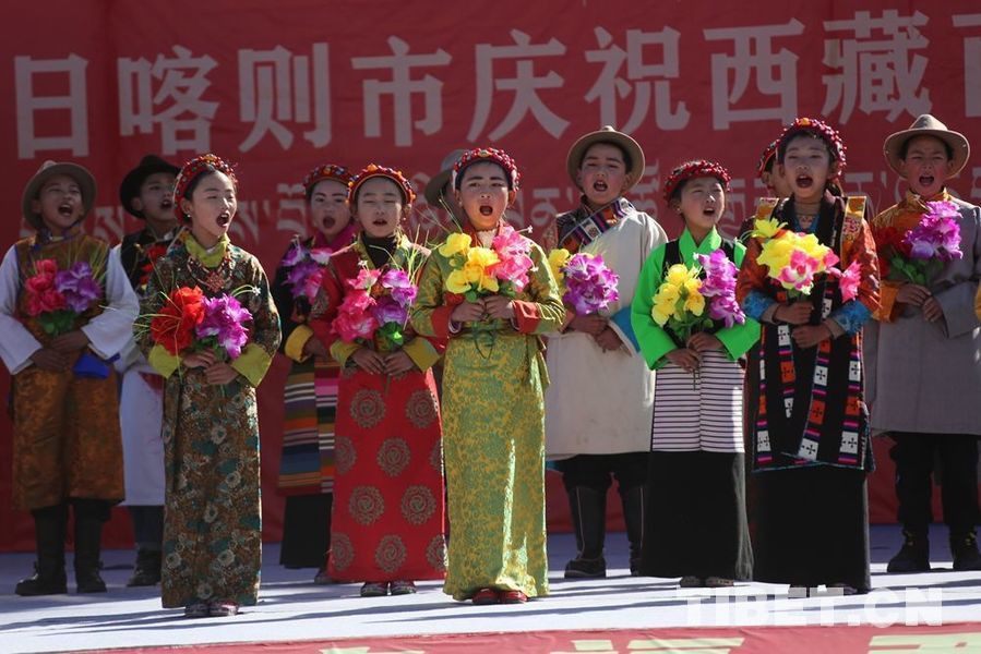 圖為紀(jì)念西藏百萬農(nóng)奴解放63周年時,日喀則的小朋友載歌載舞,歡慶節(jié)日 攝影:王佳豪