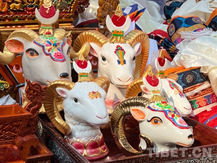圖為年貨市場(chǎng)里的“隆果”(吉祥羊頭) 攝影:次旦拉姆