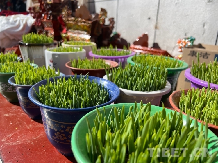 圖為年貨市場(chǎng)里的青稞苗 攝影:德吉卓瑪