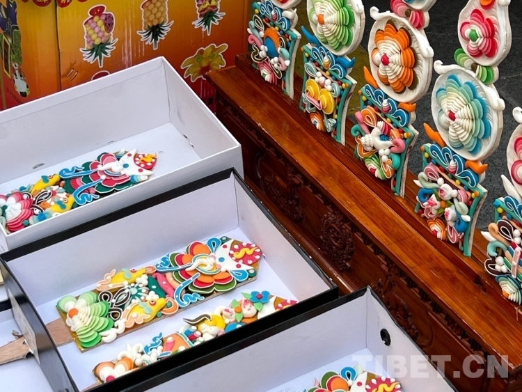 圖為年貨市場(chǎng)里的“孜卓”(酥油花) 攝影:德吉卓瑪