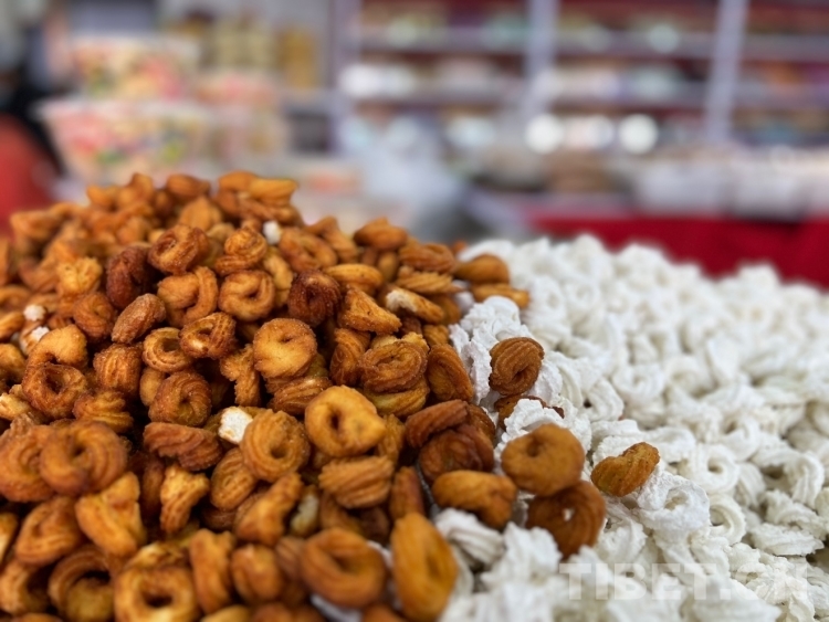 圖為年貨市場(chǎng)里的各類“卡塞” 攝影:次旦拉姆