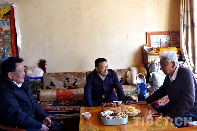 嘎瑪澤登一行先后來到,在拉薩的黨外省級領(lǐng)導(dǎo)干部珠康·土登克珠、策墨林·單增赤列、甲熱·洛桑丹增家中,送去黨和政府對他們的問候和新年祝福,看望慰問黨外知識分子代表花德米和宗教界代表人士江白拉桑、扎西堅(jiān)參。