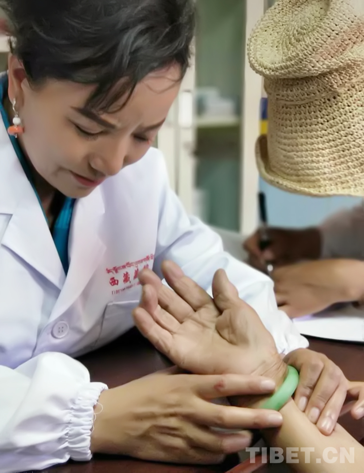 圖為全國(guó)政協(xié)委員、西藏藏醫(yī)藥大學(xué)副教授明吉措姆為患者診療