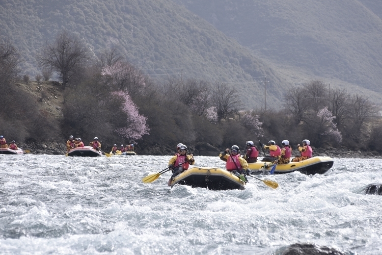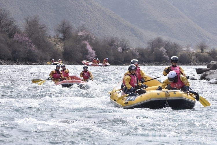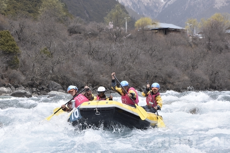 圖為4月16日,2.1公里激流漂流筏繞標(biāo)賽比賽現(xiàn)場攝影:次旦拉姆