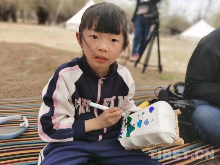 圖為小朋友在“迷你版”羊皮船上繪畫(huà) 攝影:王淑