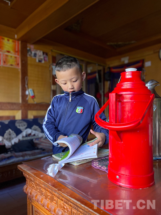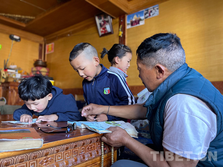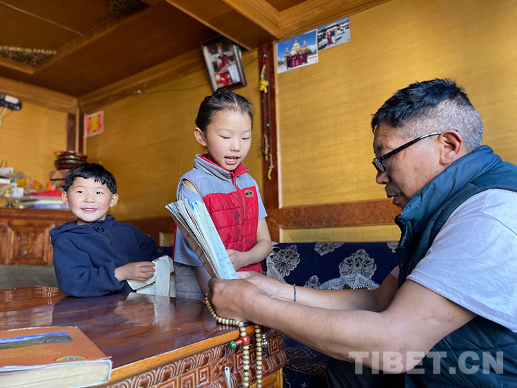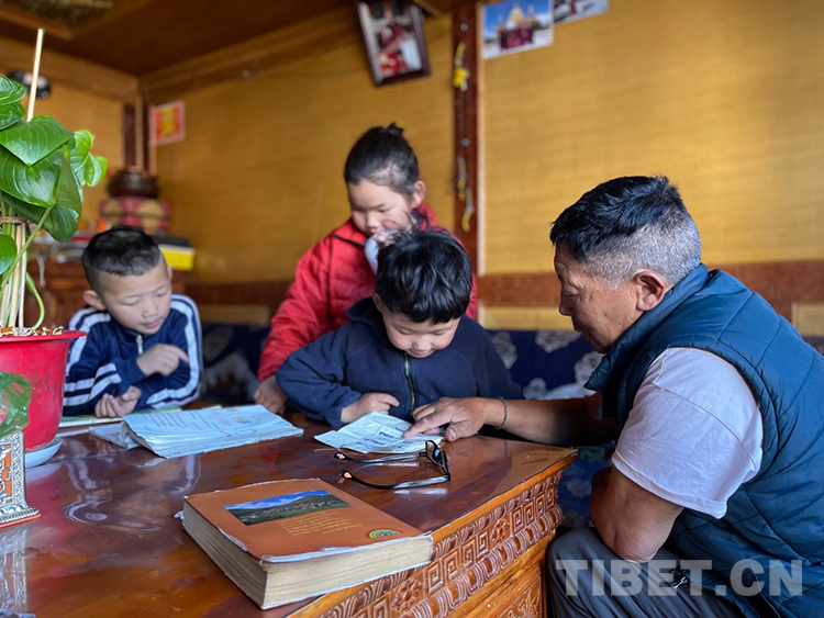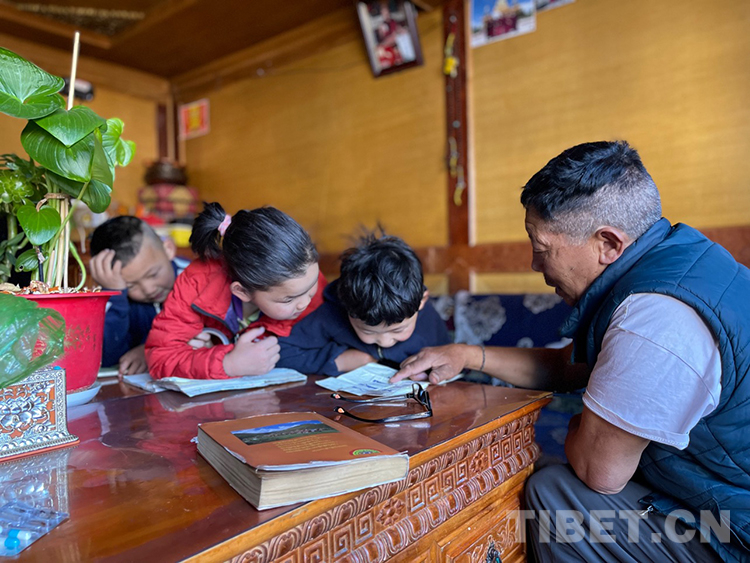 阿噶大爺自己粗通藏文,能督促和檢查藏文作業(yè),孩子們則非常享受爺爺驗(yàn)收他們的學(xué)習(xí)成果,每次都爭先恐后地請(qǐng)爺爺聽自己的發(fā)音和背誦是否準(zhǔn)確。平時(shí)老師還會(huì)安排上網(wǎng)課,因此不會(huì)耽誤他們的學(xué)業(yè)。