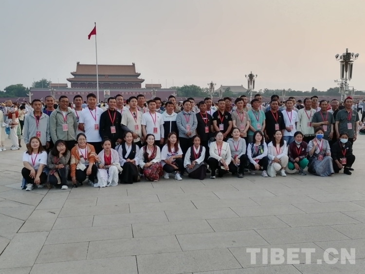圖為西藏村居兩委基層干部赴京考察學(xué)習(xí)團6月18日在天安門廣場觀看升旗后合影 圖片由北京建藏援藏工作者協(xié)會提供