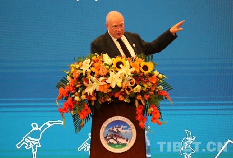 圖為大衛(wèi)·布萊爾在第五屆中國西藏旅游文化國際博覽會(huì)主旨論壇發(fā)表演講 攝影:王佳豪