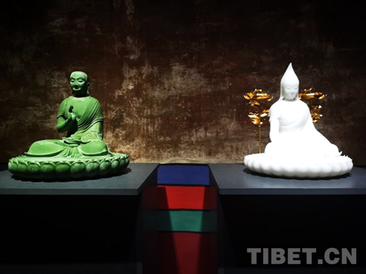 圖為展覽中圍繞西藏歷史與傳統(tǒng)創(chuàng)作的雕塑作品攝影:王淑