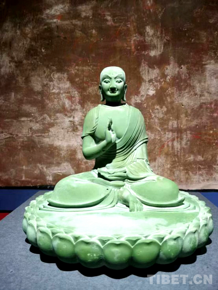 回到廈門后,蔣晟通過當(dāng)代創(chuàng)作回應(yīng)西藏的旅程。他把過往對漢式多元化塑造方式的理解,結(jié)合對于現(xiàn)代美學(xué)的詮釋,融入到西藏造像藝術(shù)的創(chuàng)作中。西藏造像藝術(shù)擁有上千年歷史,是漢藏民族交往、交流、交融的結(jié)晶,涵蓋了銅制、熔鑄琉璃、木刻、泥塑、石刻、酥油花等多種造像形式,蔣晟融會貫通,同樣以銅、琉璃、風(fēng)車木、石灰華、金箔、大漆等多種材質(zhì),結(jié)合不同的雕塑手法,回應(yīng)傳統(tǒng),并延續(xù)漢藏造像藝術(shù)交流的歷史脈絡(luò)。