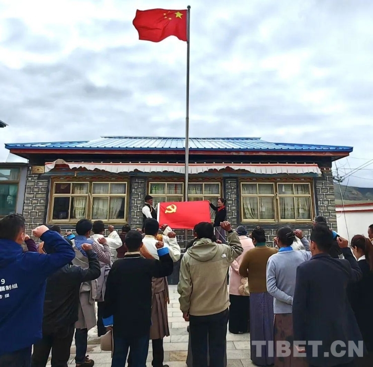 圖為帕里鎮(zhèn)一社區(qū)舉行升國旗儀式