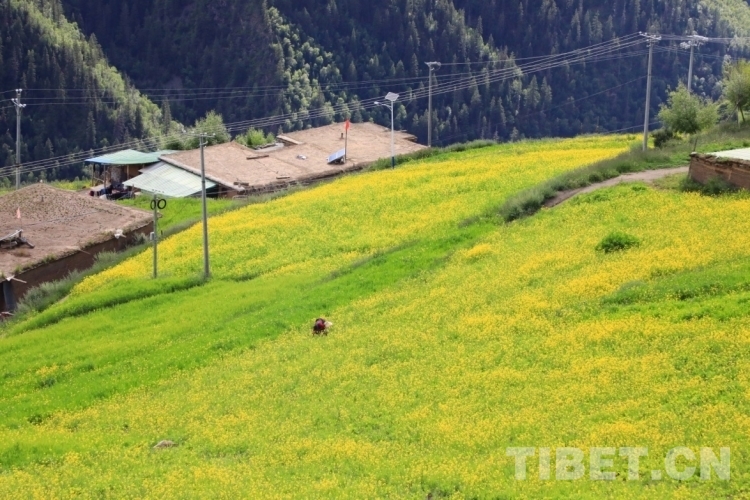 圖為村里盛開(kāi)的油菜花田 攝影:王茜