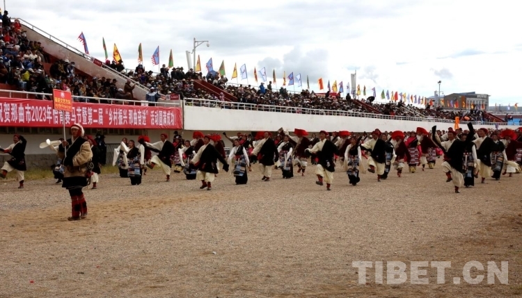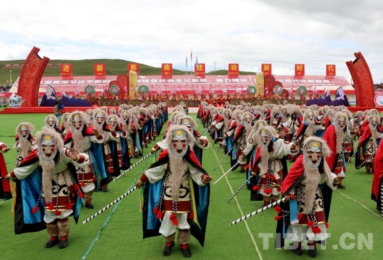 開幕式以方隊(duì)入場儀式拉開序幕,國旗方隊(duì)、會標(biāo)方隊(duì)、民兵方隊(duì)、“鄉(xiāng)村振興 那曲奮進(jìn)”冠軍代表方隊(duì)、文藝代表隊(duì)以及那曲11個縣區(qū)代表隊(duì)和馬術(shù)表演方隊(duì)依次入場。那曲各族干部群眾身著盛裝、載歌載舞,充分展示了藏北民族優(yōu)秀傳統(tǒng)文化以及新時代那曲各族人民幸福安康、奮發(fā)進(jìn)取的新風(fēng)采。