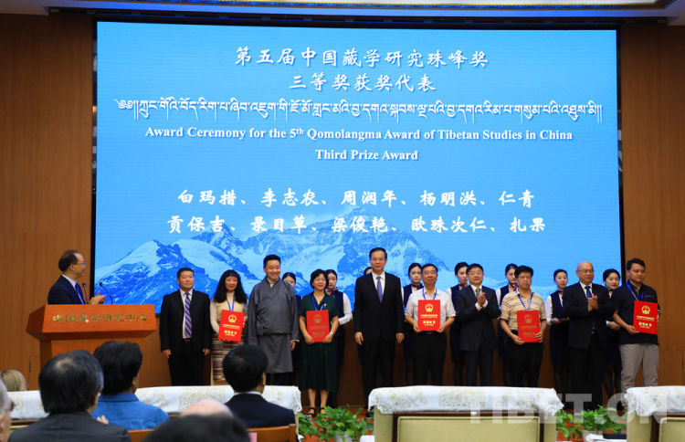 圖為第五屆中國(guó)藏學(xué)研究珠峰獎(jiǎng)?lì)C獎(jiǎng)儀式現(xiàn)場(chǎng)