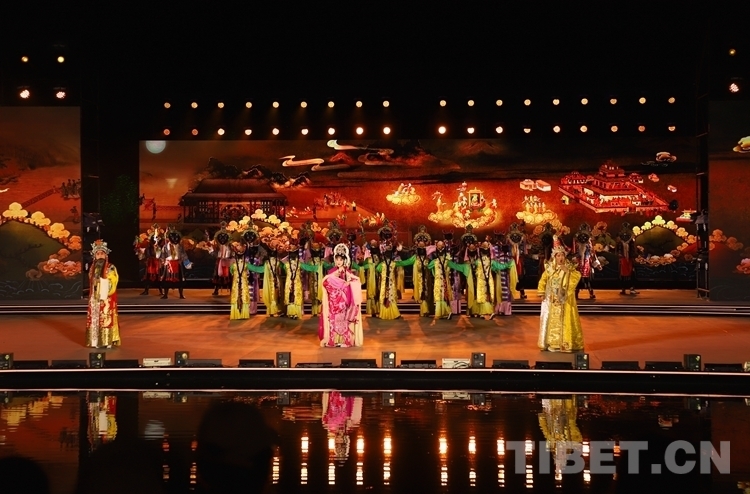 當(dāng)晚開幕式文藝演出共分為序《雪頓新韻》、上篇《相約雪頓》、下篇《心約拉薩》和尾聲《百年雪頓》四部分,整場(chǎng)文藝演出融合歌曲、舞蹈、藏戲、京劇、昆曲、街舞等元素,并以半實(shí)景的舞臺(tái)藝術(shù)形式上演《百年雪頓》等節(jié)目,線上線下呈現(xiàn)了一臺(tái)傳統(tǒng)與現(xiàn)代交相輝映、傳承與創(chuàng)新和諧相融、歷史與未來一脈相承的文藝盛宴。