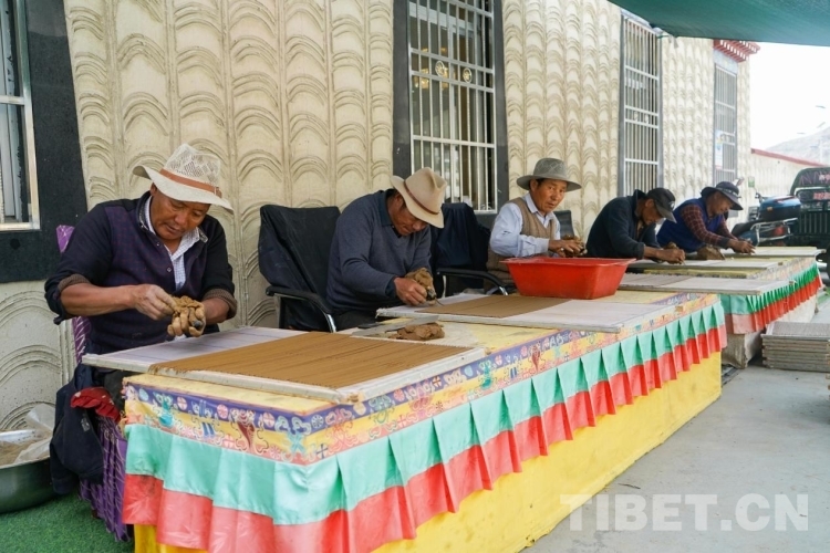“您現(xiàn)在所在的這家藏香公司,是我們吞巴鎮(zhèn)的村集體經(jīng)濟(jì)企業(yè),它為我們吞巴鎮(zhèn)脫貧攻堅(jiān)做了巨大的貢獻(xiàn)。”尼木縣曾經(jīng)是國家級貧困縣,自然條件差。2016年,作為藏香發(fā)源地的吞巴鎮(zhèn)吞達(dá)村,在村黨支部書記普布次仁的帶動下,通過村黨總支入股51.9萬元、37戶建檔立卡貧困戶每戶入股1萬元的方式,建立起了村集體經(jīng)濟(jì)合作社——吞巴藏香凈土產(chǎn)業(yè)有限公司。2022年,公司產(chǎn)值達(dá)到150萬元,總收入45萬元,凈收入27萬元,發(fā)放員工工資19.8萬元,讓建檔立卡貧困戶增收致富不返貧。也正是因?yàn)榇寮w經(jīng)濟(jì),讓吞巴鎮(zhèn)的藏香逐步走上了標(biāo)準(zhǔn)化、市場化、規(guī)?;牡缆贰?/p>