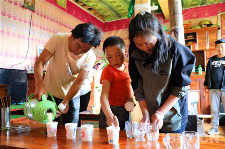 在另一戶村民家里,我們見到了德吉拉姆姐弟倆。姐弟倆非常有禮貌又主動熱情地為我們準(zhǔn)備酥油茶、讓座、指路,顯然是父母的“得力小助手”。他們做起事來一板一眼、舉止落落大方,給我們留下很深刻的印象。