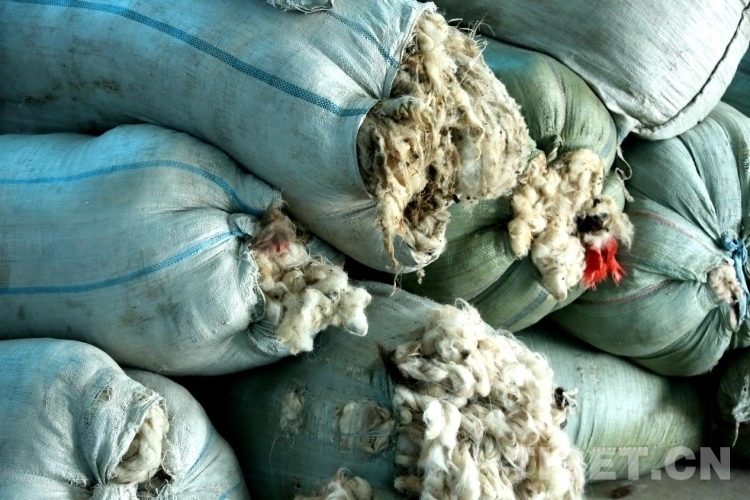 圖為在茶措村扶貧集體經(jīng)濟合作社倉庫內(nèi)擺放的羊毛 攝影:王佳豪
