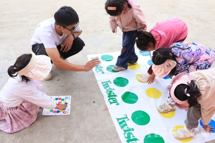 初入高原,在炙熱的陽(yáng)光下,人文科考隊(duì)見(jiàn)到了等待許久熱情的孩子們。你比劃我猜、快樂(lè)三園、師生互選……在破冰游戲氛圍的烘托下,彼此間消除了陌生感,拉近了距離,也讓人文科考隊(duì)對(duì)未來(lái)的這一段時(shí)光充滿(mǎn)期待。