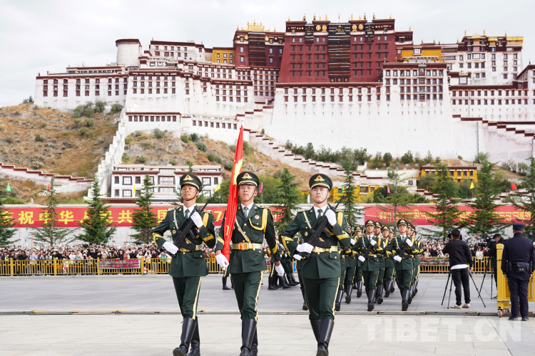 中國西藏網(wǎng)訊 10月1日上午,西藏自治區(qū)慶祝中華人民共和國成立74周年“升國旗、唱國歌”儀式在布達(dá)拉宮廣場舉行。