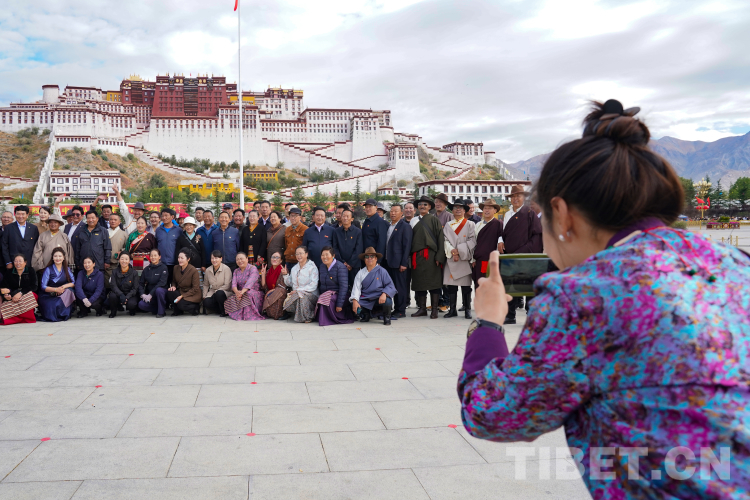圖為升旗儀式結(jié)束后各族群眾在布達(dá)拉宮廣場前合影。 攝影:王淑