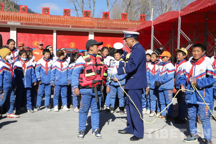 圖為昌都市森林消防支隊左貢縣中隊聯(lián)合該縣第二小學(xué),開展“消防安全進校園”活動,使學(xué)生們在寓教于樂中掌握日常消防安全知識