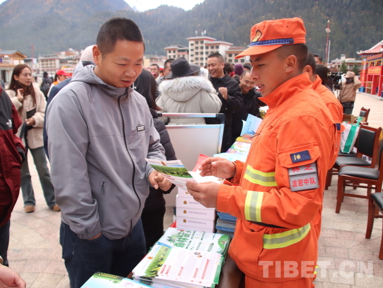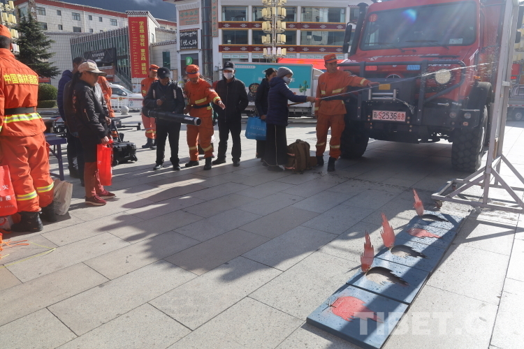 圖為林芝市森林消防支隊波密中隊在該縣廣場向市民科普日常消防安全知識