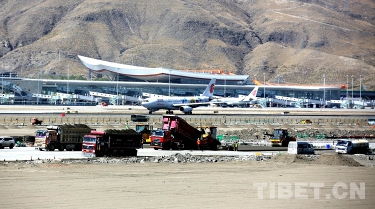 資料圖:今年4月拉薩貢嘎機場新建第二跑道工程建設(shè)現(xiàn)場
