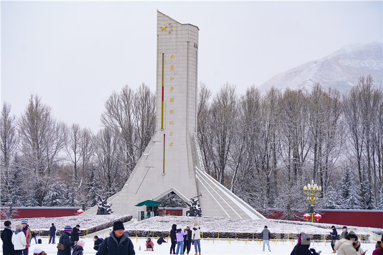 圖為雪中的西藏和平解放紀念碑 攝影:趙振宇
