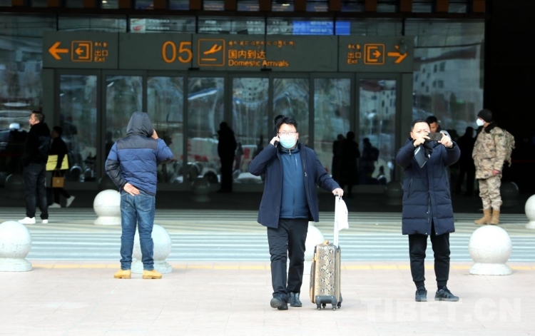 圖為1月26日春運首日,剛剛抵達拉薩貢嘎機場的旅客 攝影:王佳豪