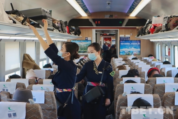 在拉日鐵路上的每一列高原動(dòng)車組列車中,1名列車長,3名乘務(wù)員,要負(fù)責(zé)9節(jié)車廂,755名乘客的乘務(wù)工作。從上車查驗(yàn)車票、行李安全擺放、列車禁煙宣傳,到途中協(xié)助乘客補(bǔ)票、提醒乘客到站信息等,列車乘務(wù)員們幾乎沒有時(shí)間休息。