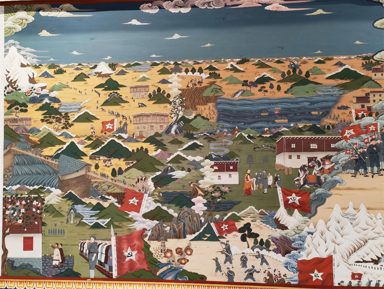 雍仲洛吾等繪巨幅唐卡《紅星照耀雪域》局部 喜饒尼瑪提供