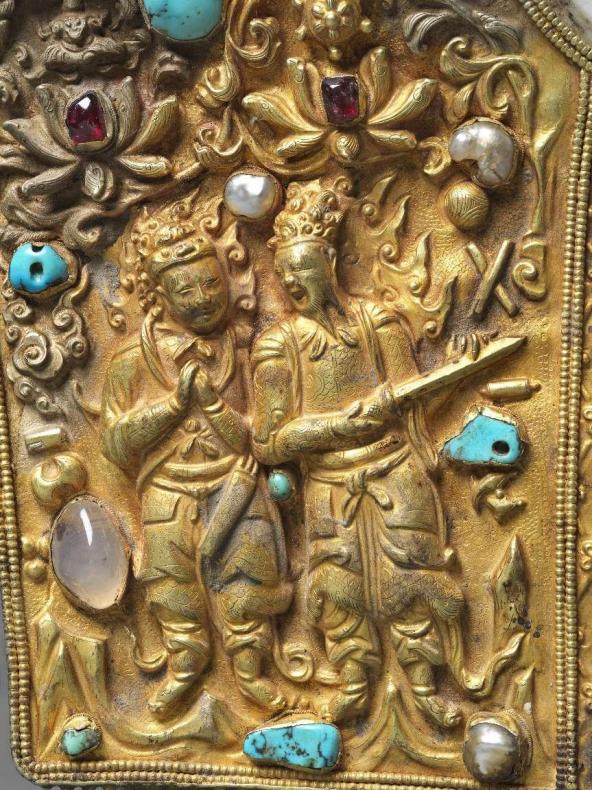 圖為公元18~19世紀(jì)嵌寶石鎏金銀馬鞍