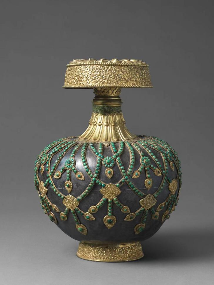 圖為公元18世紀(jì)鎏金嵌寶石雙耳甕