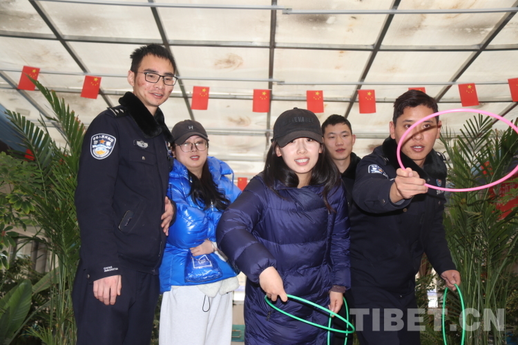 圖為來隊(duì)家屬一起在陽(yáng)光房玩套圈游戲 攝影:鄭鵬飛