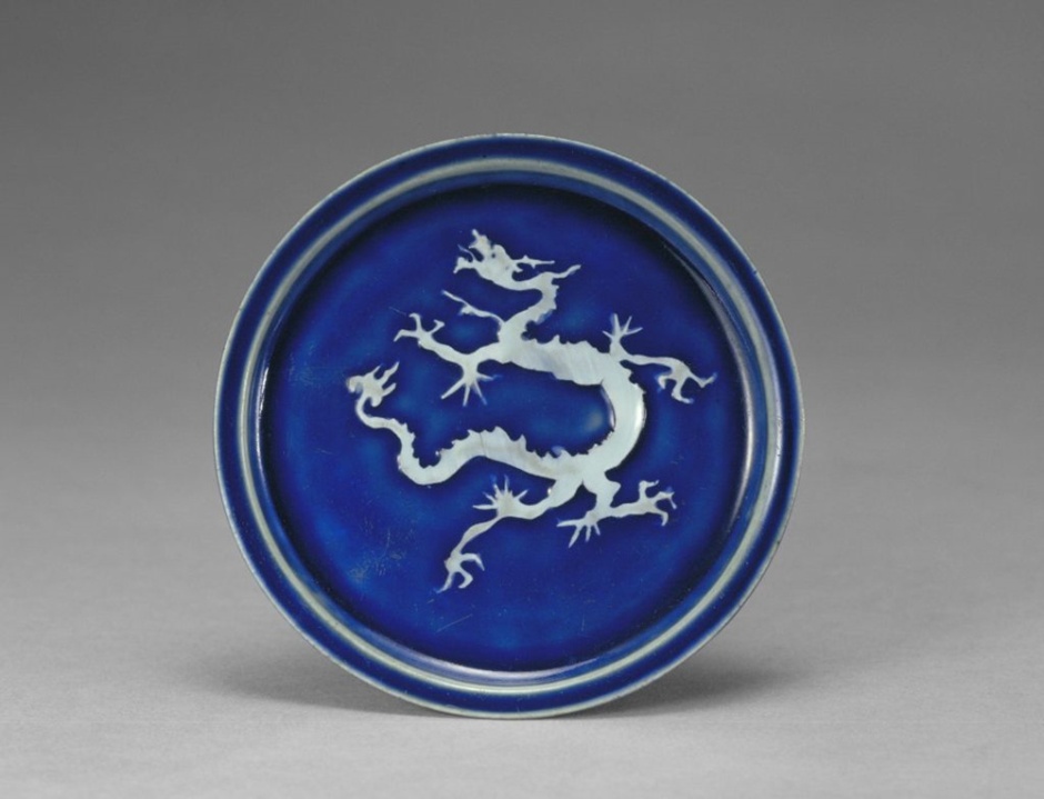 圖為藍釉白龍紋折沿盤 圖片來源:故宮博物院
