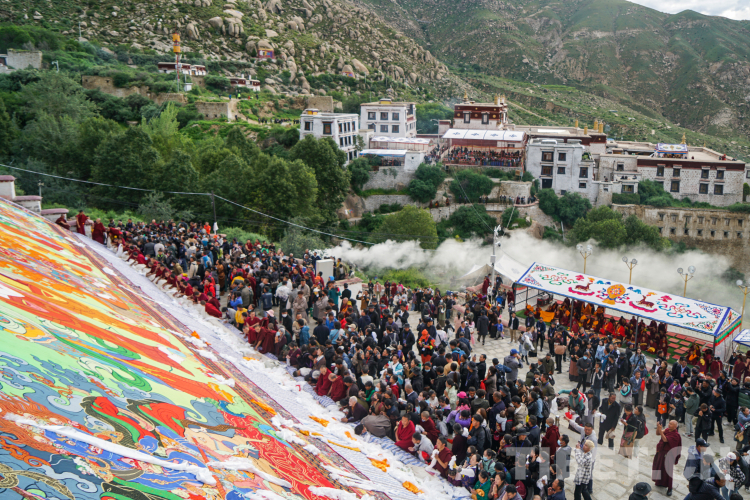 圖為2023年拉薩雪頓節(jié)哲蚌寺展佛現(xiàn)場。雪頓節(jié)距今已有近千年歷史,近年來雪頓節(jié)在各級政府的保護(hù)和發(fā)展中,已從單純的民俗文化節(jié)日成為集傳統(tǒng)展佛、體育競技、文藝匯演、經(jīng)貿(mào)洽談、商品展銷、旅游推介、民俗體驗(yàn)等為一體的復(fù)合型節(jié)日。 攝影:趙振宇
