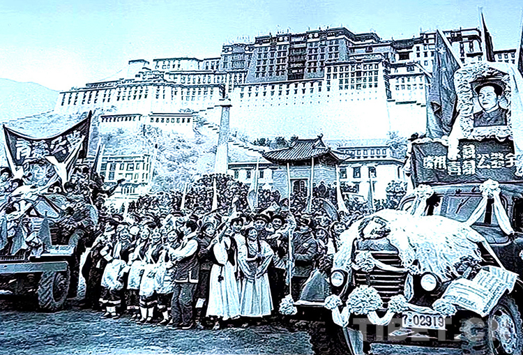 圖為1954年12月25日,在布達拉宮廣場舉行的青藏、川藏公路通車儀式(翻拍)