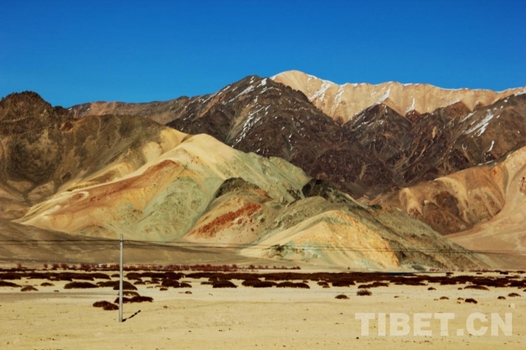 阿里地區(qū)地形復(fù)雜多樣,大致分為高原湖盆區(qū)、高山寬谷區(qū)、高山峽谷區(qū)三種形態(tài)。高海拔、高寒、日照時(shí)間長(zhǎng)且輻射強(qiáng)等自然條件,使得阿里地區(qū)不僅擁有雄渾壯麗的高原風(fēng)光,而且隨海拔、光照、季節(jié)、山體巖層所含礦物質(zhì)種類等因素呈現(xiàn)出色彩繽紛的變化。圖為阿里地區(qū)噶爾縣一處多彩的山體 攝影:劉莉