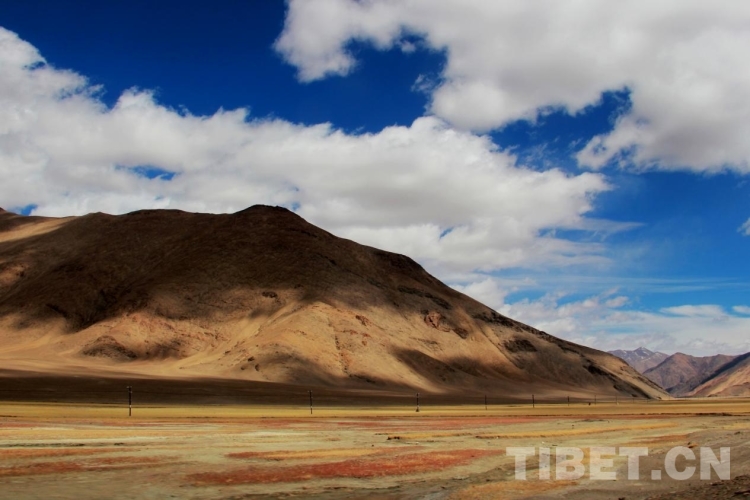 圖為強(qiáng)日照、大風(fēng)中的西藏自治區(qū)阿里地區(qū)日土縣一處山體與草場(chǎng) 攝影:劉莉