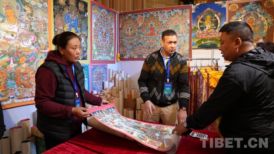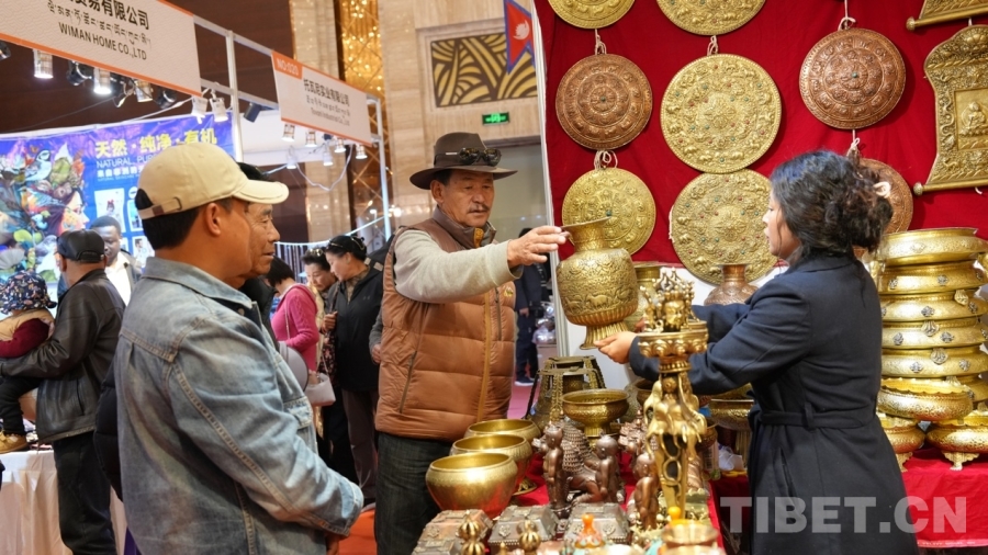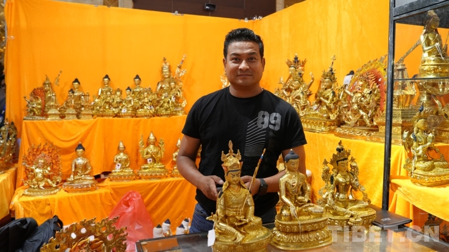 Bikram來(lái)自尼泊爾首都加德滿都,十年前來(lái)過(guò)拉薩,深深被這座城市所吸引,這次通過(guò)中外商品展銷會(huì)再次來(lái)到一直向往的拉薩,他非常開(kāi)心?!拔覀兡岵礌柕氖止に嚻吩谌澜绯雒@次我們從尼泊爾帶來(lái)的有唐卡、佛像、毛毯等,都是全手工制作的,希望在此次展銷會(huì)能夠得到西藏消費(fèi)者的支持與喜愛(ài)?!?/p>