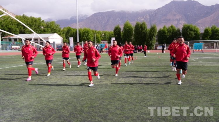 圖為昌都市足球代表隊賽前熱身 攝影:旦曲