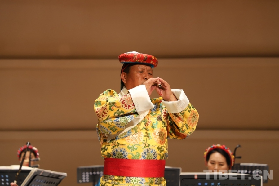 圖為藏族笛子演奏家多吉表演鷹笛獨奏《雪域牧笛》 攝影:旦曲