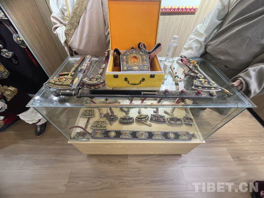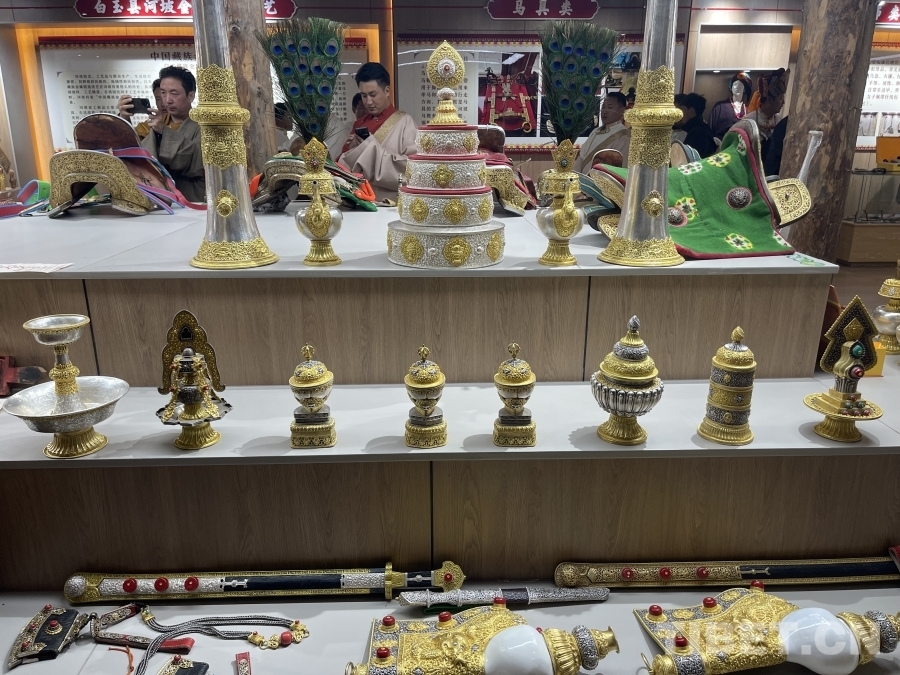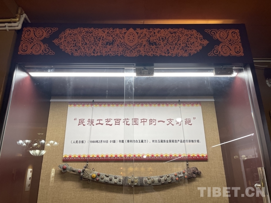 在傳習(xí)所的展廳內(nèi),各式各樣的金屬鍛造工藝品琳瑯滿(mǎn)目。其中,一把工藝精湛的藏刀吸引了眾人的目光。據(jù)講解員介紹,這把藏刀曾在1980年2月10日《人民日?qǐng)?bào)》第一版刊載的《鋒利的白玉藏刀》上被譽(yù)為“民族工藝百花園中的一支奇葩”。白玉縣河坡鎮(zhèn)的金屬鍛造技藝分為七大類(lèi),刀具作為最具特色和知名度的產(chǎn)品,深受人們喜愛(ài)。