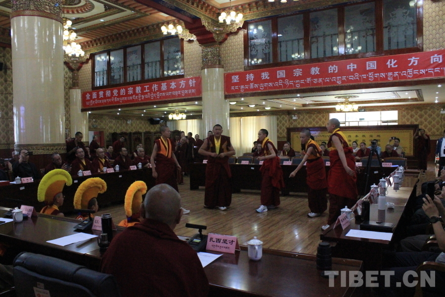 中國西藏網(wǎng)訊 6月30日,西藏佛學(xué)院舉辦少年活佛班學(xué)員初中畢業(yè)典禮暨學(xué)習(xí)成果展示活動(dòng)。少年活佛班畢業(yè)學(xué)員集體朗誦《畢業(yè)驪歌》,背誦《入菩薩行論》,并展示自己的書法作品和辯經(jīng)成果。