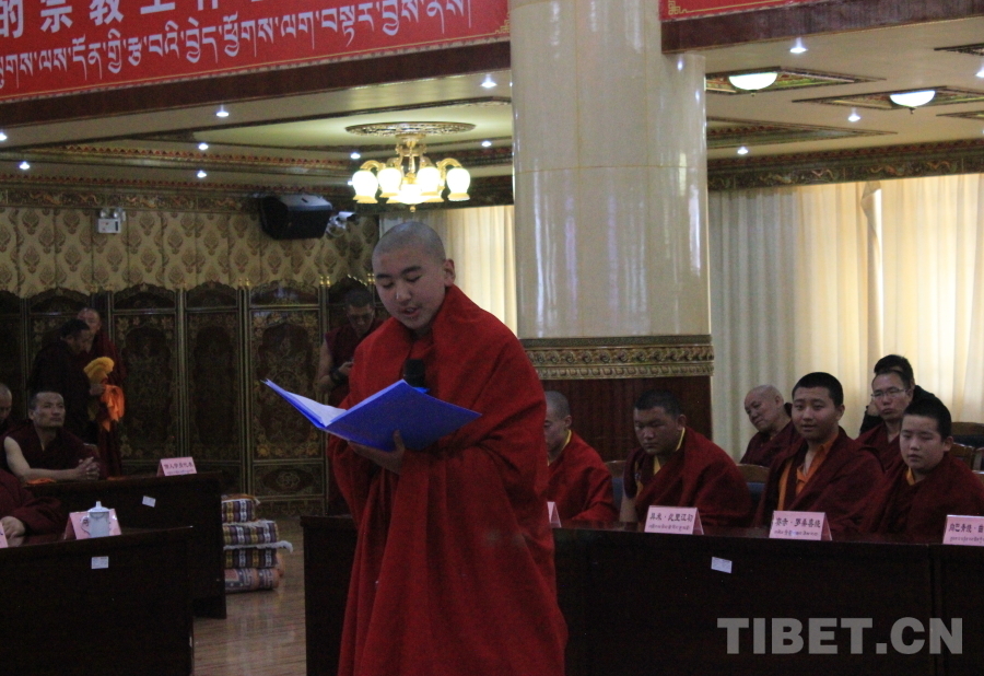 圖為少年活佛班代表向巴青繞?曲杰旺秋正在發(fā)言 攝影:張曉琪