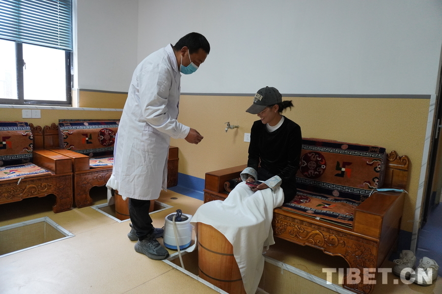 資料圖:游客在米林藏醫(yī)院體驗(yàn)藏醫(yī)藥特色療法